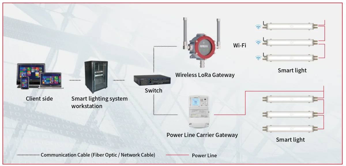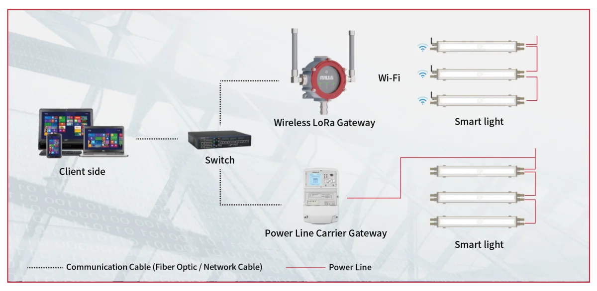 Tongxin Intelligent Lighting 2.0 uses industrial lighting fixtures as a medium for information exchange and interconnection. Through wireless LoRa and power line carrier communication, and by integrating different sensors and intelligent devices according to varying working environments and requirements, it enables efficient communication and precise intelligent control among lighting equipment.