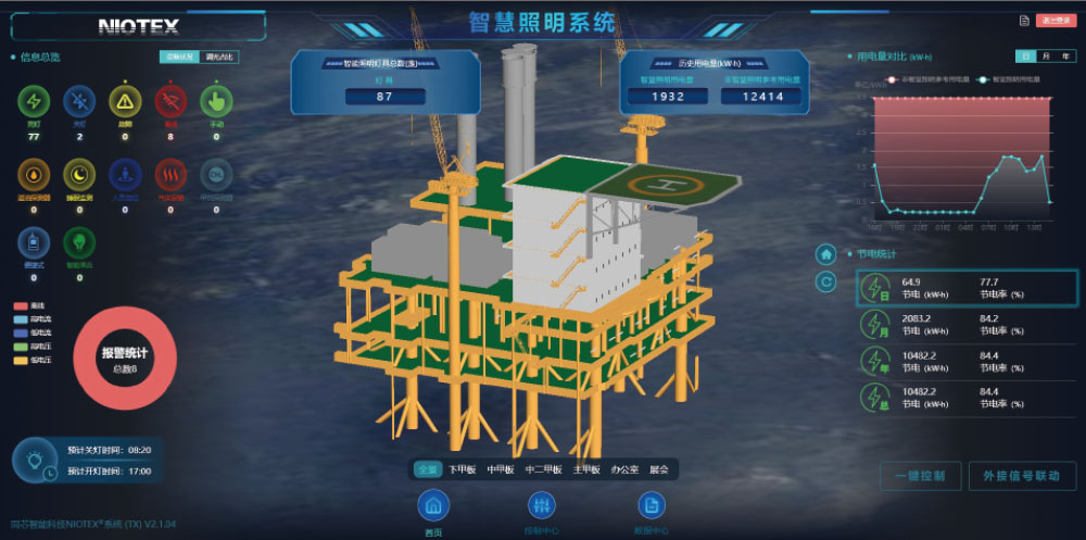 The system can intelligently control lamp switches, adjust brightness, and monitor operating status. By combining lighting technology with communication technology and sensor control, it allows the integration of different functional sensors based on user needs and specific working environments, delivering intelligent lighting solutions for various application scenarios. It fulfills diverse demands such as illumination adjustment, remote control, energy consumption statistics, fault alarms, and emergency alerts.