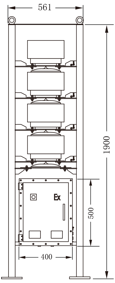Dimensions:Main horn: | 561 mm × 561 mm × 1900 mm |